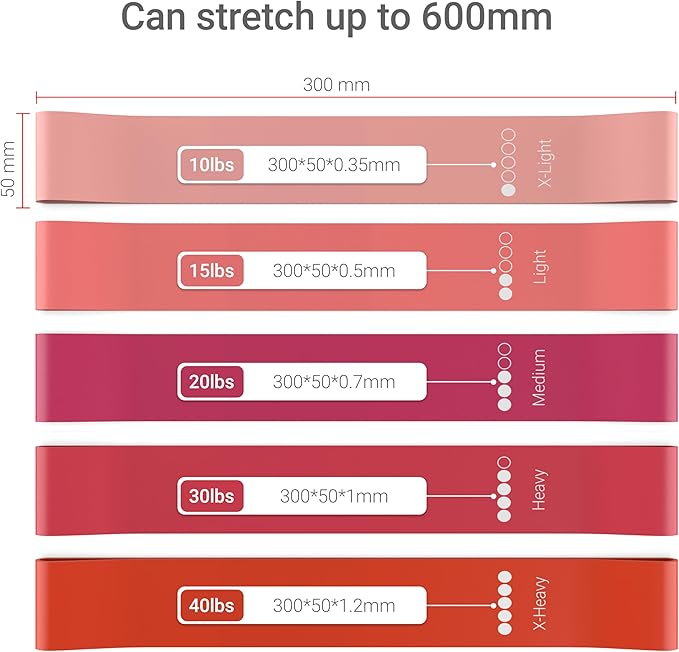 - PREMIUM NATURAL LATEX: Made from 100% natural latex, these exercise bands are strong, elastic, and long-lasting. The material of these workout bands ensures smooth resistance, keeps its shape even after daily use, and provides safe, effective training for every workout.