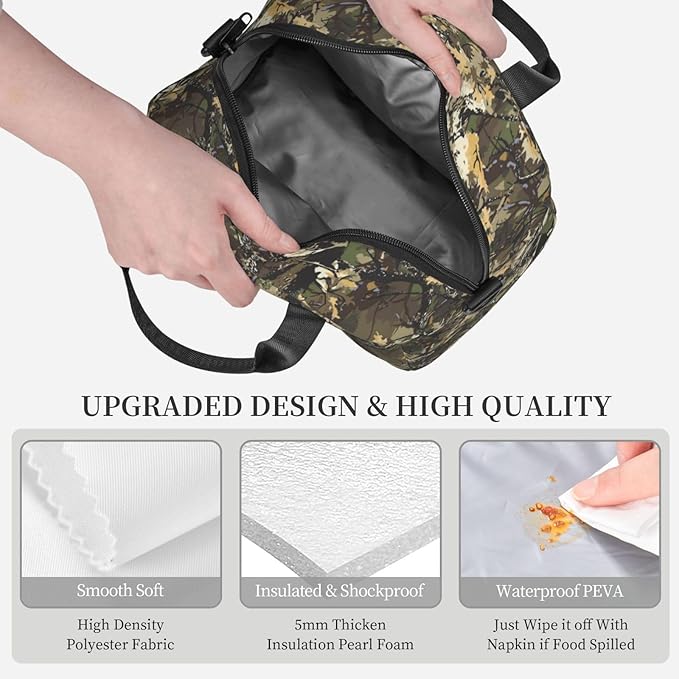 Camo Reusable Insulated Lunch Box Waterproof Lunch Bag with Detachable and Adjustable Shoulder Strap for Office Picnic or Travel