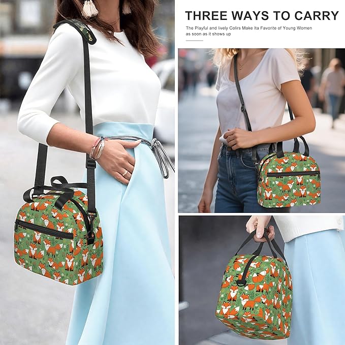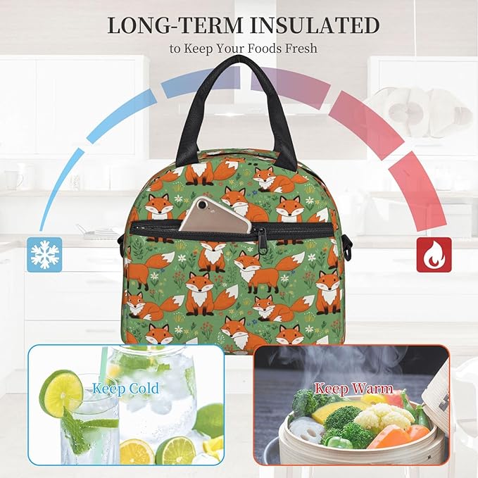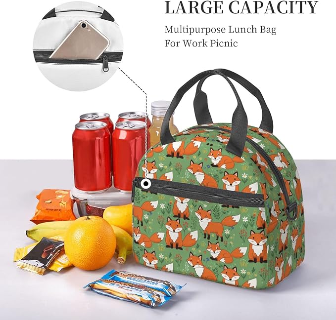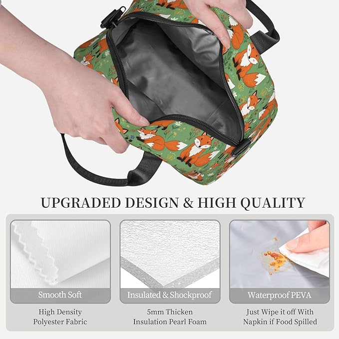 Fox Reusable Insulated Lunch Box Waterproof Lunch Bag with Detachable and Adjustable Shoulder Strap for Office Picnic or Travel