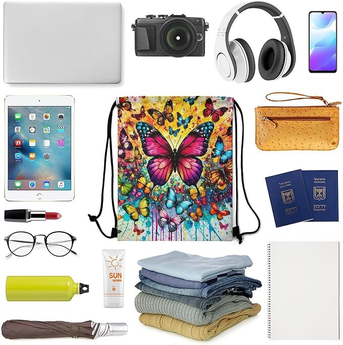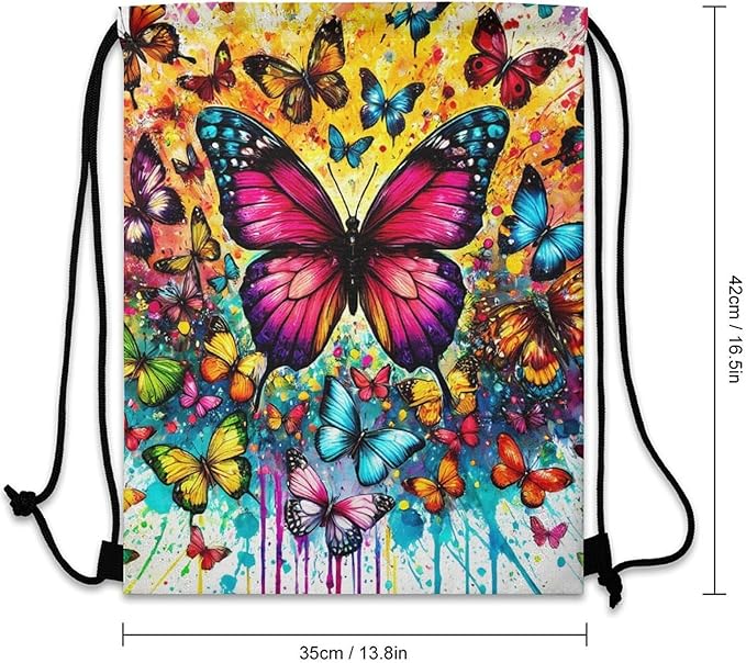 - Versatile and Practical: Whether for travel, commuting, fitness, or any other adventure, our butterfly drawstring backpack is the ultimate companion. Stay organized and prepared wherever life takes you.