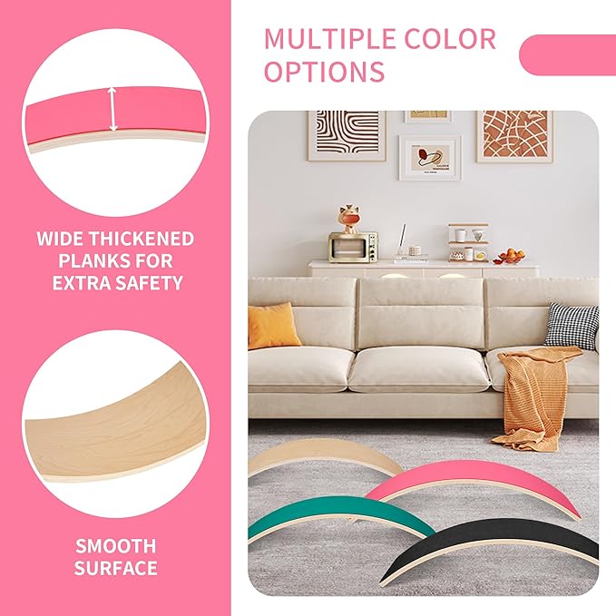 Balance Board, 32 Inch Wooden Wobble Board, Montessori Rocker Yoga Curvy Board Natural Wood, Open Ended Learning Toy, Sensory Play Equipment for Office & Classroom, Multiple Colors