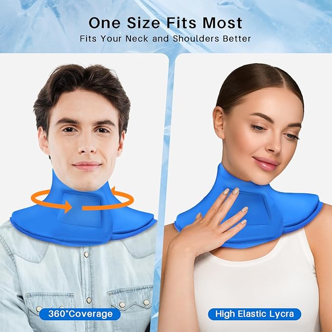 - Targeted Neck Pain Relief--Specifically designed for targeted neck pain relief, this cooling neck wraps effectively reduces swelling, alleviates neck sprains and inflammation, and eases cervical spine, occipital, and general neck soreness. The neck ice pack wrap provides therapeutic support for conditions like herniated discs and hot flashes, while also accelerating recovery post-cervical surgery. Ideal for white-collar professionals, athletes, and individuals recovering from neck surgery.
