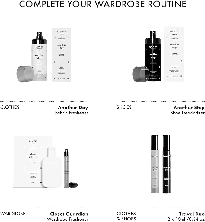 byMATTER Shoe & Fabric Freshener Spray Set – Travel Fabric Refresher & Shoe Deodorizer Pack, Odor Elimination, Suits All Materials, Smell Remover Sprays (2x 0.34 Fl Oz / 10ml)