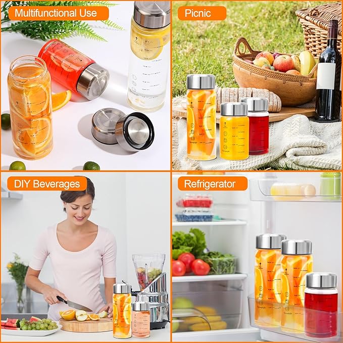 - 2. Versatility Meets Convenience: With wide mouths and convenient measurement markings, our bottles are designed for ease of use. Whether you're blending up a post-workout protein shake, whipping up a fruity smoothie, or storing homemade juice for later, these bottles offer unmatched versatility and convenience.