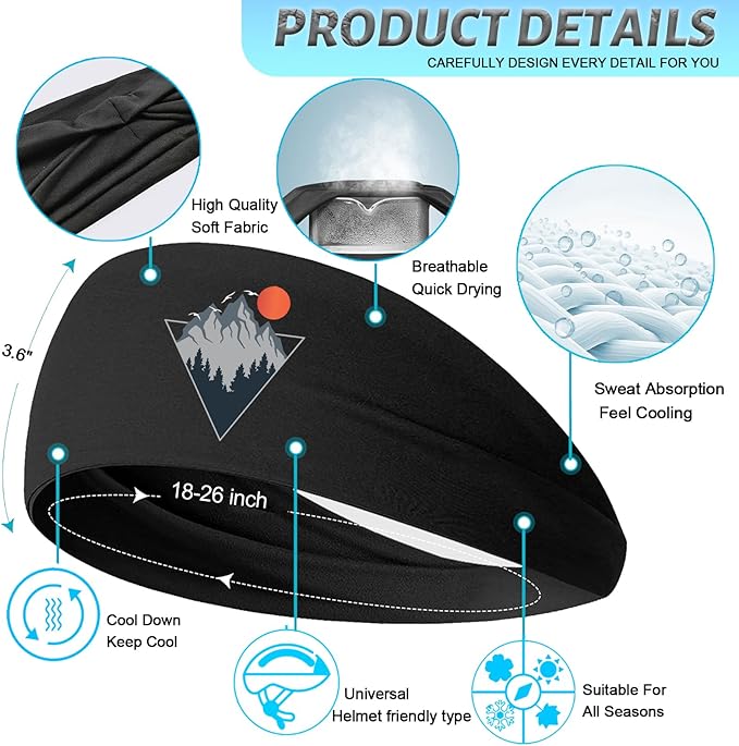 - 【Adjustable & elastic】 Athletic cooling workout headbands for men women, the widened headband can be folded and worn in front of the forehead or cover the entire head,9.2 inches long,width about 3.6 inches, can be stretched to 14.2 inches. Sweat band the stretchy and adjustable design ensures a comfortable fit for all head sizes,no more worries of headache.