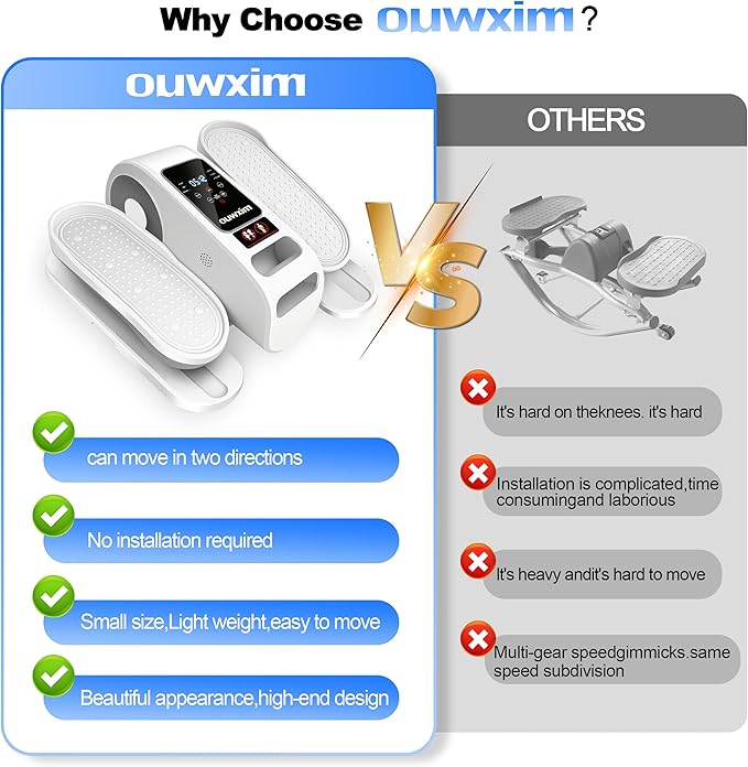 - 【Convenience and Quiet Design】Elliptical machine is equipped with the latest quiet system - <15dB, which ensures a silent workout even at high speeds, perfect for home and office environments. Featuring a convenient design, it can be lifted and taken away at any time and is ready to use right out of the box, just plug it in with no assembly required