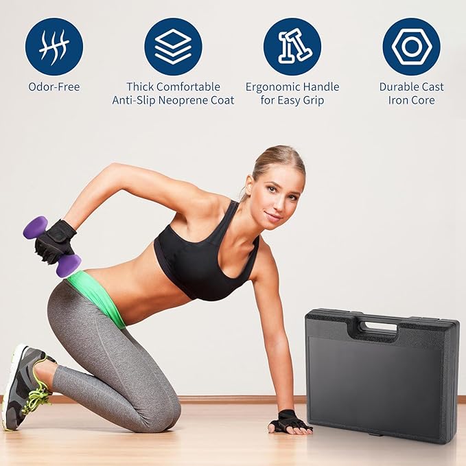 - PACKAGE LIST: Dumbbell weights set includes a pair of 1 lbs, 2 lbs, and 3 lbs weights, and a compact storage plastic case which is easy to carry and store.