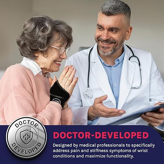 Doctor Developed Wrist Brace, Wrist Wraps for Carpal Tunnel Arthritis, Tendonitis, Hand Support, Ideal for Fitness, Weightlifting - Handbook Included (Large-1 Pack)