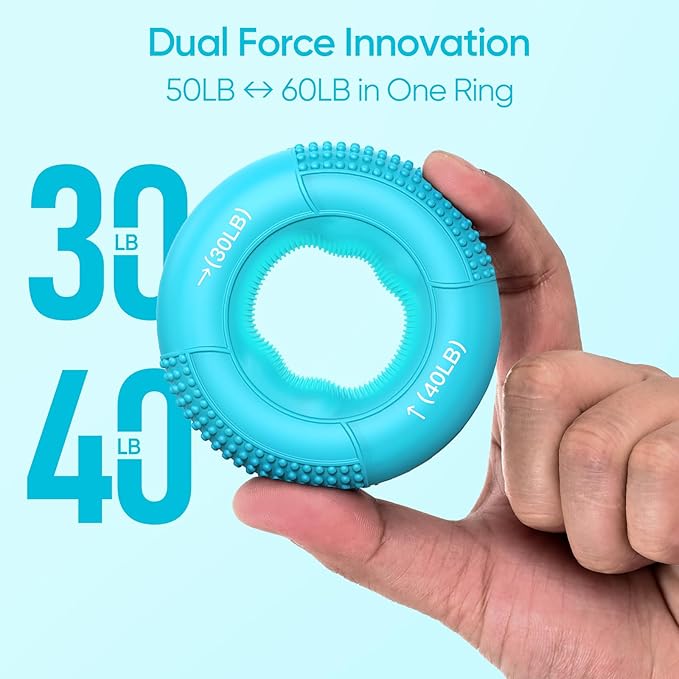 - ๐๐๐ฎ๐น ๐ฅ๐ฒ๐๐ถ๐๐๐ฎ๐ป๐ฐ๐ฒ ๐ฅ๐ถ๐ป๐ด๐ ๐ณ๐ผ๐ฟ ๐ฆ๐บ๐ฎ๐ฟ๐๐ฒ๐ฟ ๐ง๐ฟ๐ฎ๐ถ๐ป๐ถ๐ป๐ด: Each ring offers two resistance levels depending on how you squeezeโe.g., 30LB vs 40LBโgiving you double the value in one tool. Perfect for progressing from rehab to strength training without switching equipment.