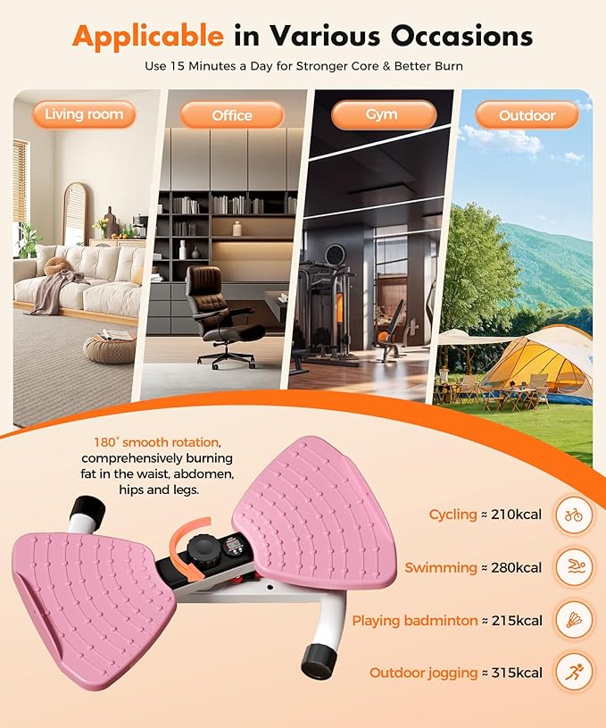 - 【Smart Digital Counter】Exclusive smart system auto-tracks reps and records workout time in real time, letting you master your training progress precisely. Say goodbye to manual counting—this waist twister machine keeps you on top of every workout