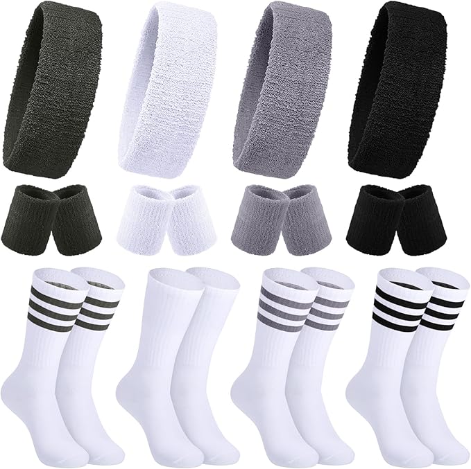 - Good Sweat Absorption: our sweatbands for women, men wrist sweatbands and striped socks can keep your skin dry and clean; Workout outfit for women and men is suitable for various activities such as tennis, volleyball, and football