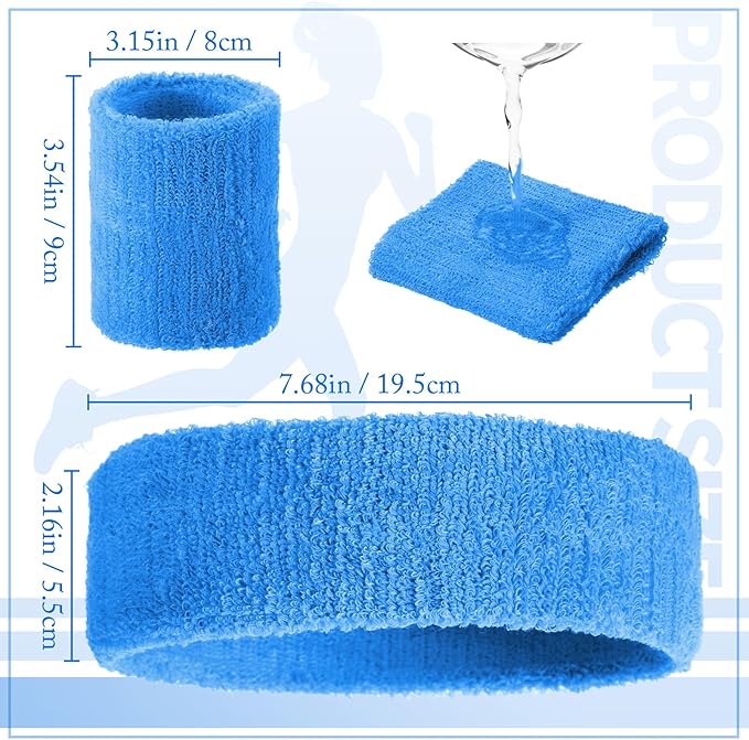 - Good Sweat Absorption: these absorbent headbands and towel wristbands would not easily slip off your head and wrist once you put them on; With good sweat absorption, the headbands and wristbands can help absorb your sweat and keep you fresh; The headbands and wristbands are flexible and they can accommodate different sizes of head and wrist, able to meet the needs of most people