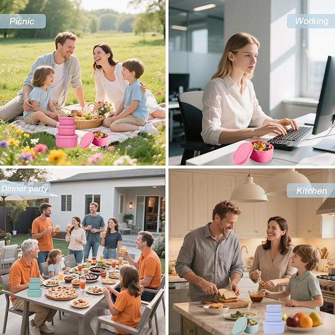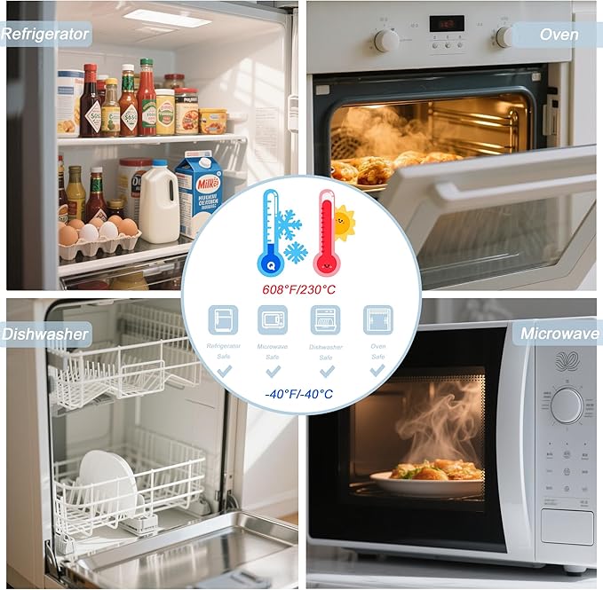 - [Food-Grade Silicone Storage Containers]: WYGLHLF food storage containers are made from premium food grade silicone, Free of BPA, PVC, Lead and Phthalate. These safe and eco-friendly containers withstand extreme temperatures (-40°F to 608°F / -40°C to 230°C) and are microwave, oven, freezer, and dishwasher-safe. The snug-fitting lids keep food fresh and prevent spills, while the flexible yet durable design ensures long-term use. Perfect for any kitchen!
