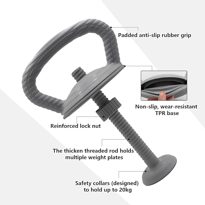 - 【Upgrade Safety Handle and Locking nut】The Kettlebell handle use wear-resistant TPR as base, making it have more Grip strength to keep plates fixed. The locking nut can keep plates in right way. Padded anti-slip rubber grip making your exercise more comfortable and safe.