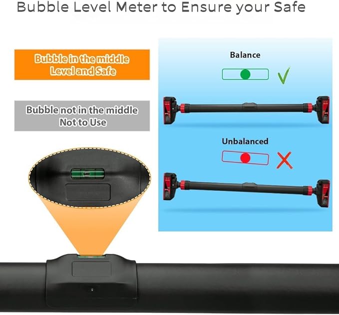 - [QUICK & EASY INSTALLATION] The intuitive level meter and arrow guide ensure balanced installation. Just align the bubble to the middle—no tools required for this door frame pull up bar.