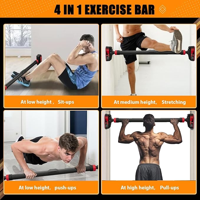 - [HEAVY-DUTY & SAFE] Maximize your workouts with this door pull up bar, built from reinforced alloy steel to support 440LBS capacity. The anti-slip grips and safety-lock mechanism ensure stability, making it perfect for strength training, pull-ups, and dead hangs.