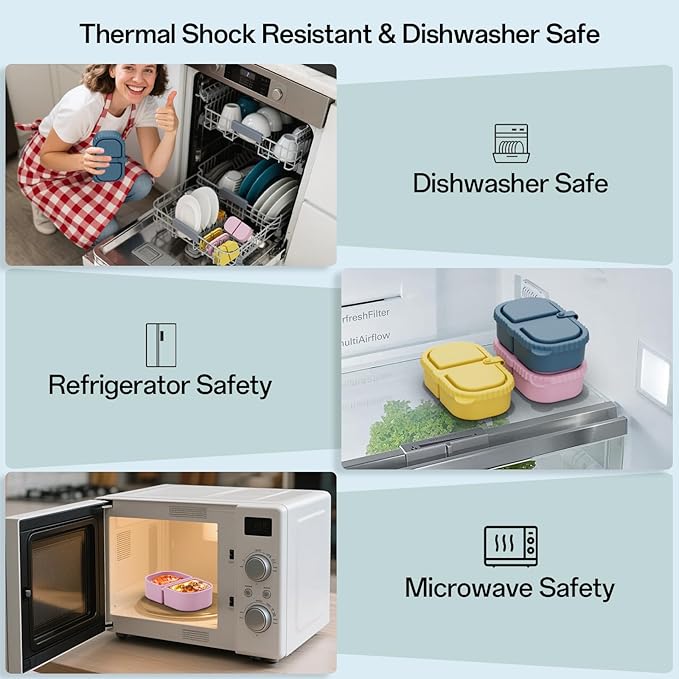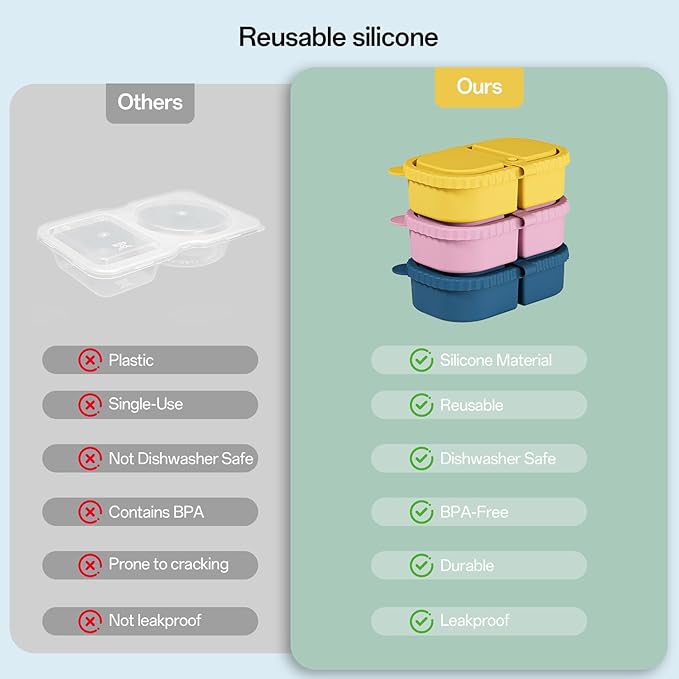 - Reusable & BPA-Free Silicone: Made from premium BPA-free silicone, these reusable snack containers with lids are microwave, dishwasher, and freezer safe. Durable, odor-resistant, and stain-resistant for everyday use.