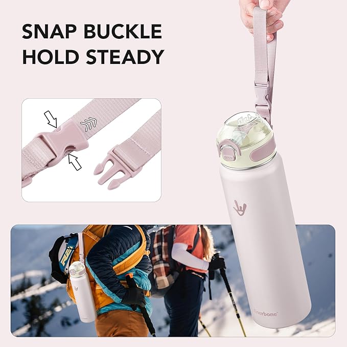 Enerbone 32 oz Insulated Water Bottle, Stainless Steel Bottle with Carrying Strap, Double-Wall Vacuum Insulation Design, Leakproof Sports Bottle with Straw, Keep Drinks Cold or Hot for Hours