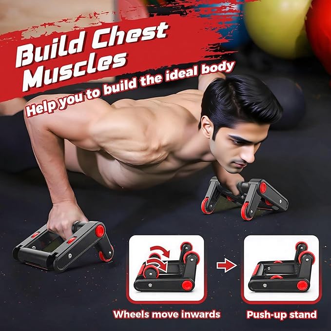 - **【Upgraded 2-in-1 Ab Roller & Push Up Bar Combo】** Unlike traditional curved push up bars, switch effortlessly between ab exerciser and push up stand modes. Simply fold the wheels inward to convert the ab roller into a push-up bar in seconds—ideal for versatile, space-saving home gym setups.