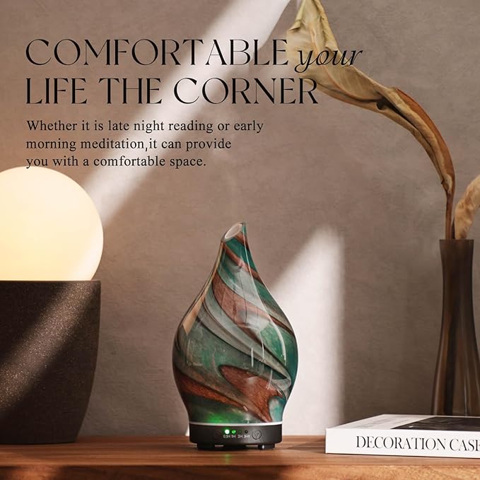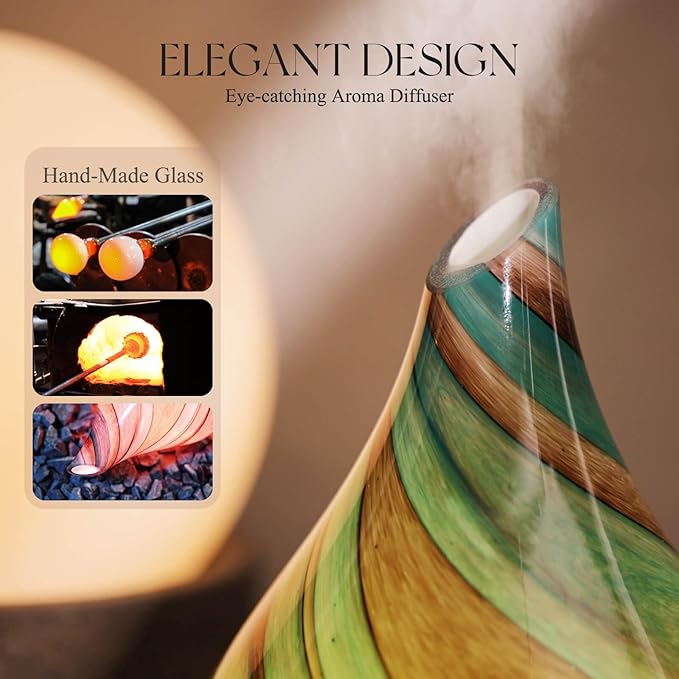 - UNIQUE ART DECOR - 150ml glass essential oil diffuser with star-shaped glass cover & wood grain base. Adds artistic harmony to your living space, perfect for bedrooms, living rooms, kids' rooms, studies, offices, & yoga studios. Enhances ambience