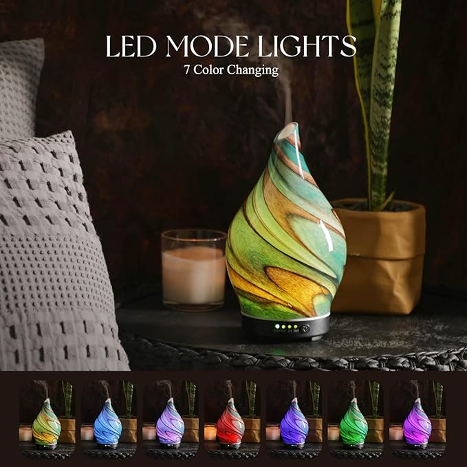 Porseme 150ml Essential Oil Diffuser Glass Color Changing Aroma Air Diffusers Aromatherapy Ultrasonic Cool Mist Humidifier 4 Running Hours Waterless Auto-Off for Sleeping Yoga Office Spa (Teal Green)