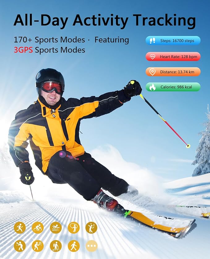 - 【All-Day Activity Tracking & 170+ Sports Modes】Maximize every workout with 170+ sports modes and 24/7 activity tracking. SOUYIE fitness tracker accurately monitors steps, distance, and calories burned all day to accelerate your goal achievement. Train smarter in 170+ activities including running, yoga, basketball, and skipping—plus 3 dedicated GPS modes (walking/running/cycling) for real-time route mapping. View real-time workout tracks on the app to analyze performance and optimize progress.
