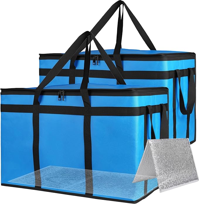 Bodaon Large 2-Pack Insulated Food Delivery Bag With Hard Bottom, XXXL Grocery Shopping/Catering bag, Pizza Cooler Bags, Cold/Hot Styrofoam Carrier for Doordash/Travel/Car, Door Dash Accessories