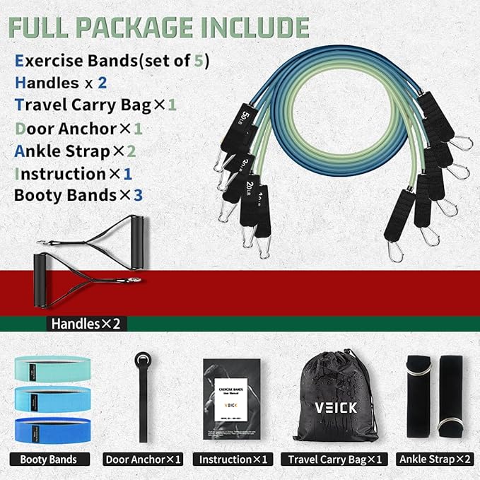 VEICK Resistance Bands, Exercise Bands, Workout Bands, Resistance Bands for Working Out with Handles for Men and Women, Exercising Bands for Fitness Weights Work Out at Home
