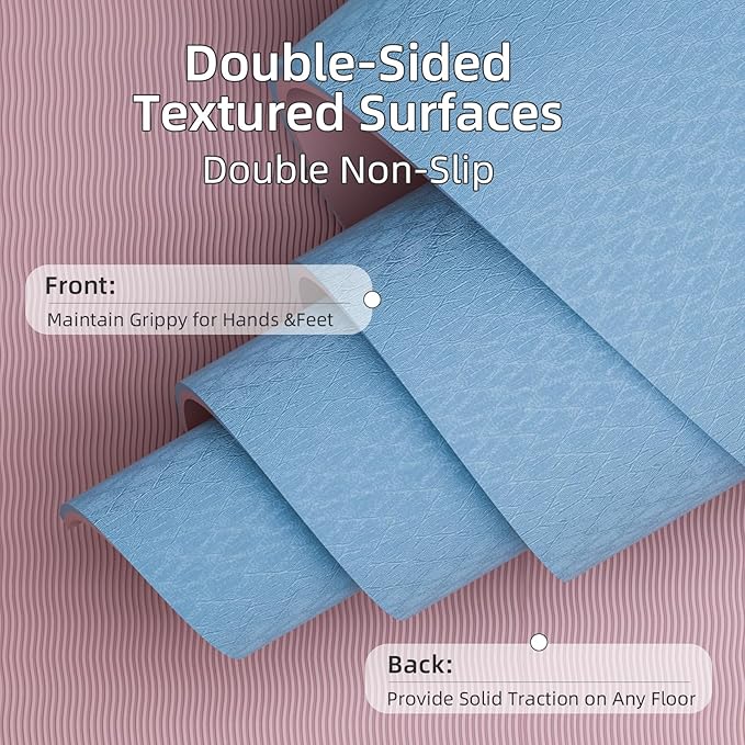 - 【Double-Sided Non Slip Design】: The design of anti-skid texture on both sides on the back features good cushioning and optimal grip, ensuring that you stay in place during even the challenging poses, allowing you to focus on your breath and movement. Our non slip yoga mat is suitable for hot yoga, pilates, and any indoor or outdoor fitness routines.