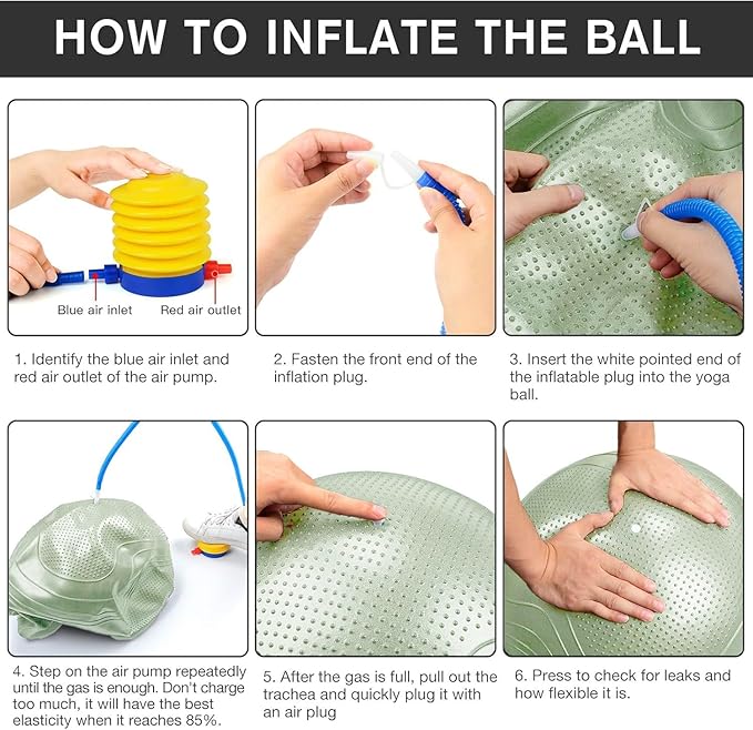 - PACKING LIST AND SERVICES: Gruper exercise ball set, including 1 manual pump, 2 air plugs, 1 gadget and workout guide, you can easily inflate the yoga ball to the hardness you like. We provide 100% satisfactory after-sales service. If you have any questions, please contact us, we will replace or issue a quick refund for you for free.
