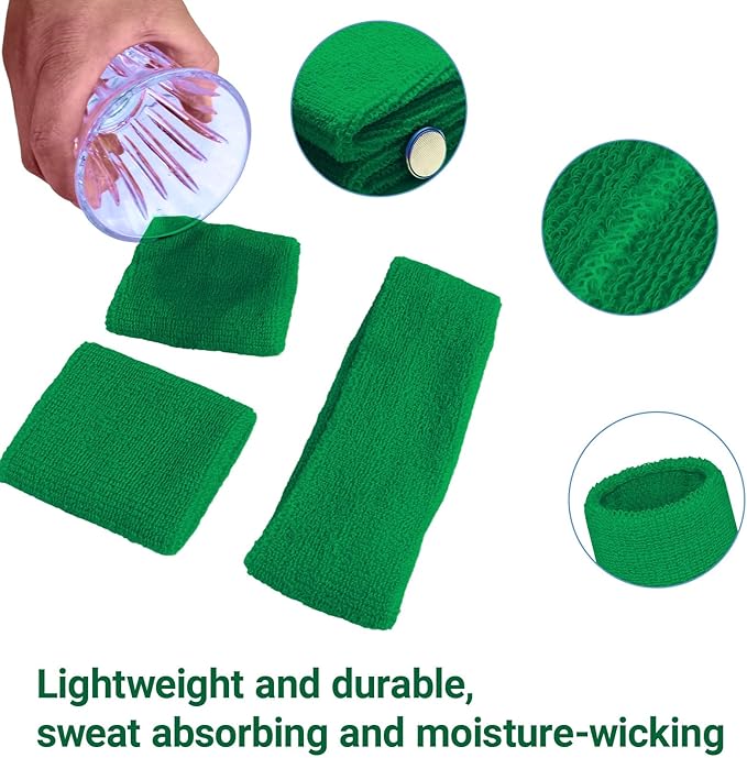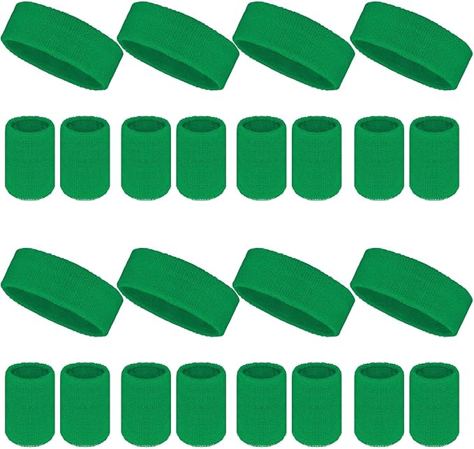 - Sweatbands Set Bulk: You will receive 8 pieces of dark green headbands,16 pieces of dark green wristbands, enough to meet your daily use and dressing demands, come in neon solid colors and striped style, very stylish for a good look