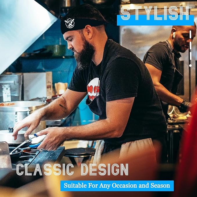 - 【Quality comfortable headbands for men】Sport headbands for men is made of quality polyester and spandex, active cooling absorbent material, these sweat wicking bands have nice breathable, lightweight, smooth and soft.Good durability, non pilling, wear-resistant material. The chef printing sports headband for men very convenient to carry and easy to clean.