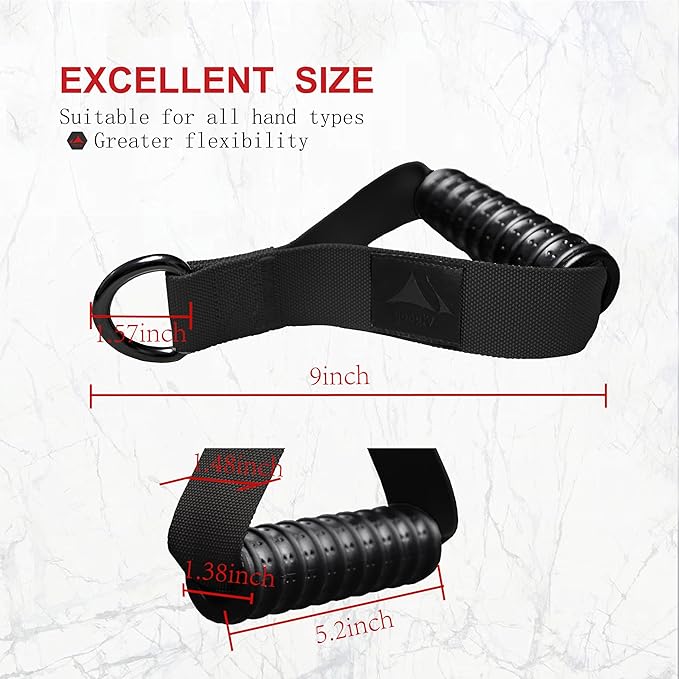 - PRECISION PROCESSED HANDLE PORT - Flexible Rotation, Don't Cut The Straps: The grip port adopts a curved design and smooth processing technology preventing them from getting stuck or tearing the straps, and allows the grips to rotate more flexibly during gym work out, ensuring Safely and smoothly training, and extending the service life of the handle attachment.