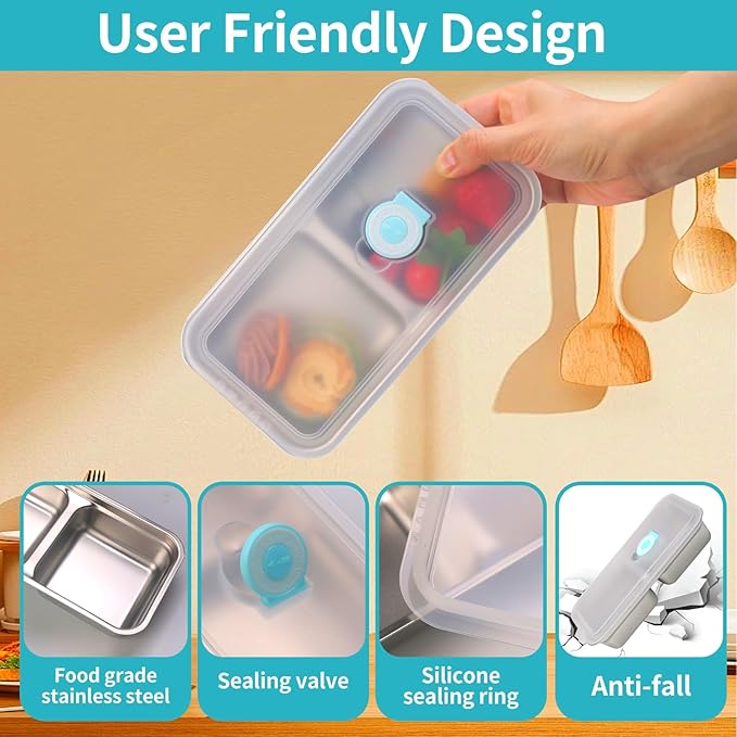 - High-Quality Material: Made from food-grade stainless steel, this double condiment container is super durable. It’s safe to use in the fridge, dishwasher, and microwave, so it’s not only eco-friendly and healthy but also reusable for your snacks.