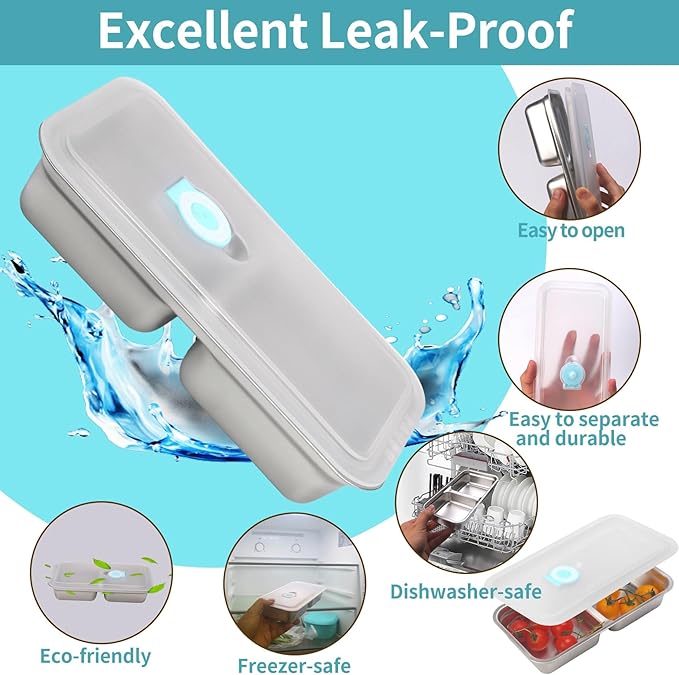 - Leak-Proof PP Lid: The stainless steel lunch box containers come with a leak-proof PP lid and a silicone sealing ring, ensuring a tight seal to prevent spills and leaks while on the go. The semi-transparent lid also allows you to easily see the contents of your lunch box.