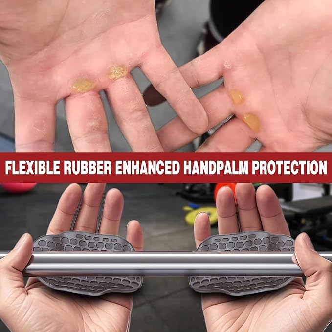 Ergonomic Non-Slip Fitness Grip Pads,Secured Finger Clip Hand Grips for Weightlifting,Pull-Ups,Dumbbells,Gym Workout Gloves,Palm Protectors for Men and Women(Black/Grey)