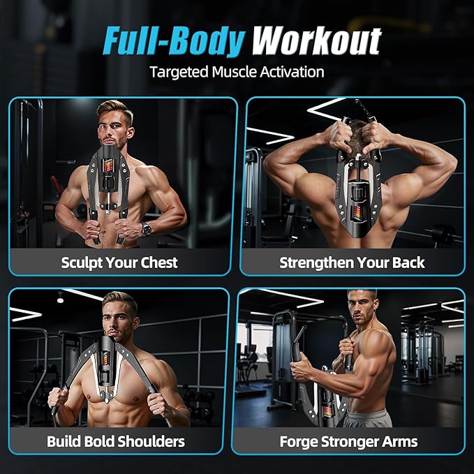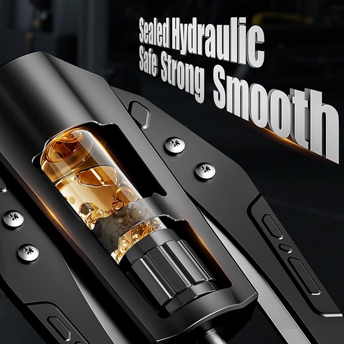 - [Adjustable Resistance 22–440 lbs] Easily rotate the knob to adjust resistance from beginner-friendly 22 lbs up to an intense 440 lbs. The hydraulic system provides continuous tension, making it ideal for toning, muscle building, and progressive strength training at home, in the gym, or on the go.