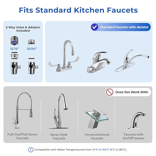 - Easy Installation: This countertop water filter for PFAS removal installs in minutes without drilling or plumbing. Compatible with most standard kitchen faucets and includes all necessary parts like a wrench and adapters. Switch between filtered and unfiltered water easily using the diverter valve.