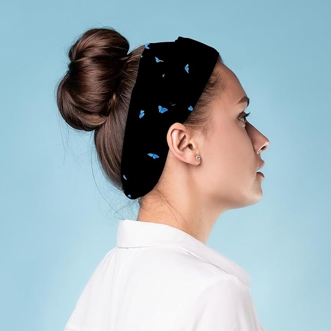 Butterfly on Black Background Headband for Women, Fashionable Sport Hairband, Elastic Wide Headbands Non Slip Workout Yoga Sport