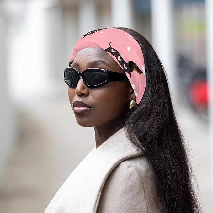 Dachshund Dogs and Hearts Wide Headbands for Women