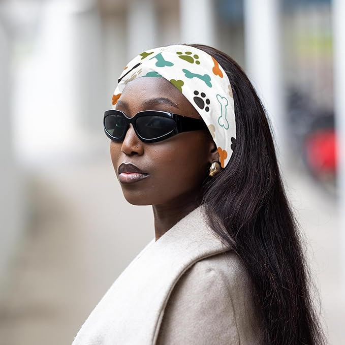 Wide Headbands for Women, Colored Dog Cat Paw Footprint and Bones Hairband for Women Non Slip Sports Head Bands for Women's Hair