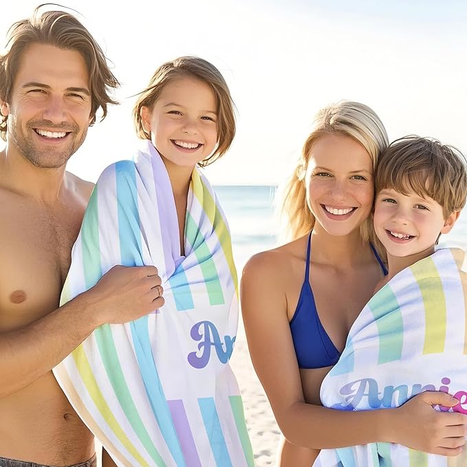 - Perfect Gift for Water Lovers: Whether it's for birthdays, summer vacations, Easter,Mother's Day,or just because, this personalized beach towel makes a delightful gift for swimmers, beach lovers, and sunshine chasers. Surprise your kids, partner, families, or friends with a unique and practical present they'll use all season long