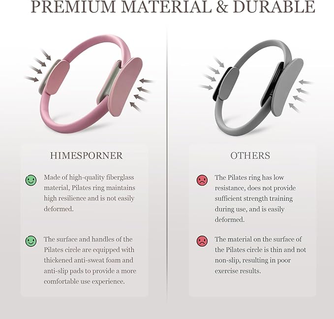- 【Pilates Ring and Ball】: 12 inch Pilates Ring is made of high-quality elastic fiberglass, covered with comfortable sweat-proof sponge, and the handles are equipped with thick foam pads. 9 inch Pilates ball is non-slip and durable, and comes with a straw for easy inflating. They can effectively help you complete most Pilates movements and strengthen your core and whole-body muscles