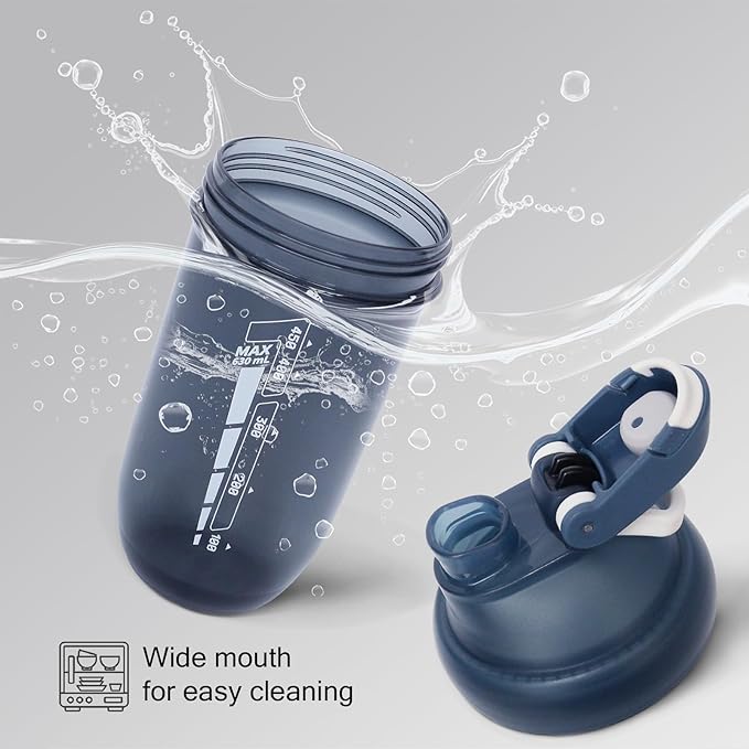 20 oz protein shaker bottle, TRITAN Plastic, BPA/BPS Free Whey Protein Drink Cups for Pre-Workout and Gym, Blender Shaker for Blending Protein Shakes, Overnight Oats and Smoothies(blue)