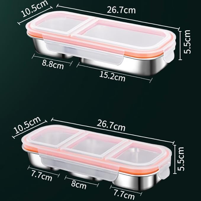 - Double Compartment Snack Containers: our stainless steel snack containers is feature double compartment design,say goodbye to flavor mixing, features Double Compartment perfect for organizing different snacks, condiments, or small portions of food items.