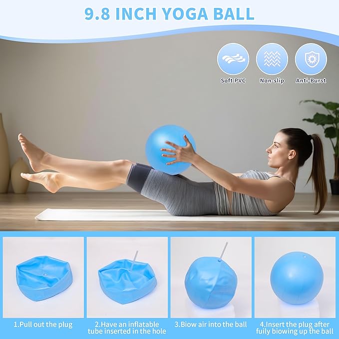 - 【Pilates Ring and Ball】: 12 inch Pilates Ring is made of high-quality elastic fiberglass, covered with comfortable sweat-proof sponge, and the handles are equipped with thick foam pads. 9 inch Pilates ball is non-slip and durable, and comes with a straw for easy inflating. They can effectively help you complete most Pilates movements and strengthen your core and whole-body muscles.