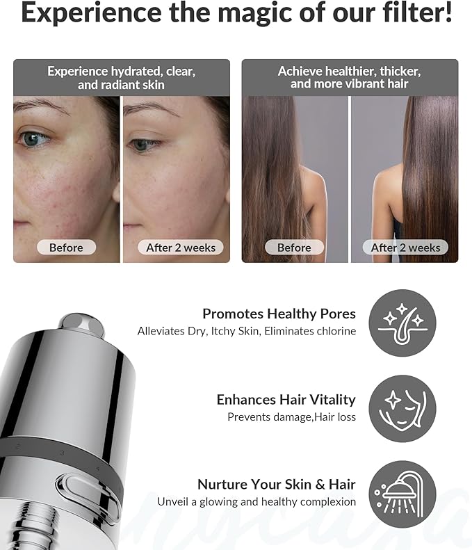 - 【Gentle Enough for Daily Use by All Ages】Say goodbye to redness and hair damage caused by harsh shower water. Ideal for families and individuals with sensitive skin or scalp concerns. This shower head filter for hard water helps restore moisture, reduce irritation, and improve hair texture by reducing harsh chemicals from your water supply.