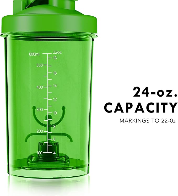 - Portable & Large Capacity: 24oz (700ml) shaker with built-in carrying hook makes it easy to take anywhere. Perfect for mixing up to 3 scoops of powder and 16oz of liquid without spills.