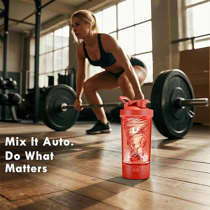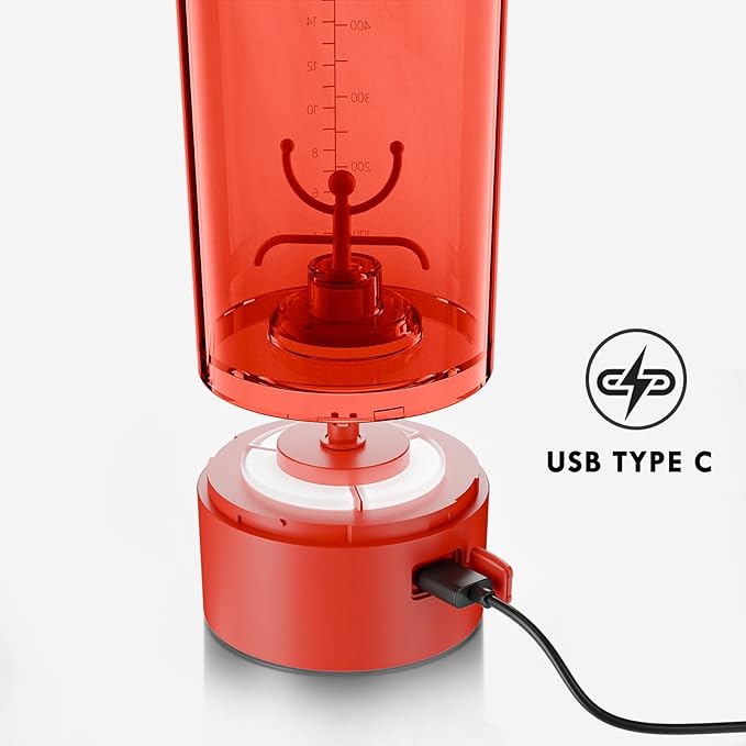 Electric Shaker Bottle USB C Rechargeable Protein Shaker Bottle Shaker cups for Protein Shakes Mixer with 24oz BPA Free Tritan Meal Replacement Shakes Made with Tritan Portable Blender Cup (Red)
