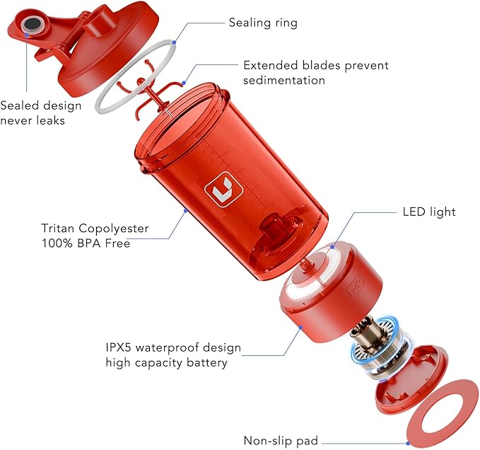 - One-Touch Smooth Mixing: Press once for consistently even blending. The intelligent motor creates a powerful vortex to ensure every sip is silky-smooth, automatically shutting off after 30 seconds , freeing you from manual shaking for protein shakes, meal replacements, and pre-workout formulas.